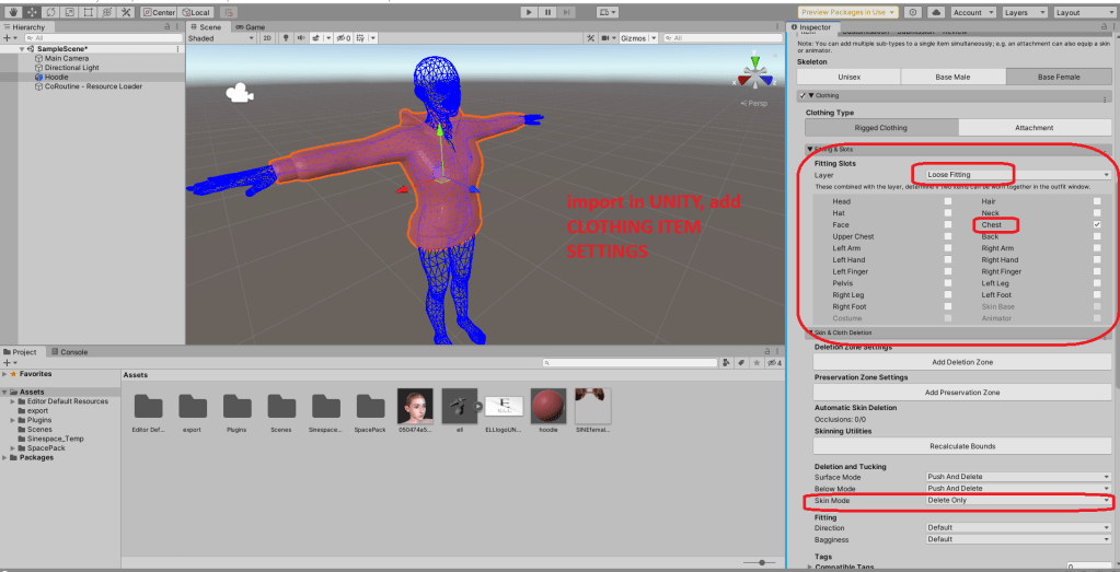 - Find Clothing item setting component, pick base female and again set everything i did, layer loose fitting, so clothing under hoodie will bedeleted/if creator set it layer that can be deleted/. Skin mode in deletion only delete skin around, it does not push it inside, looks better :)Then hit ” Automatic Skin Weightning”. If done right, hit “Prepare” button