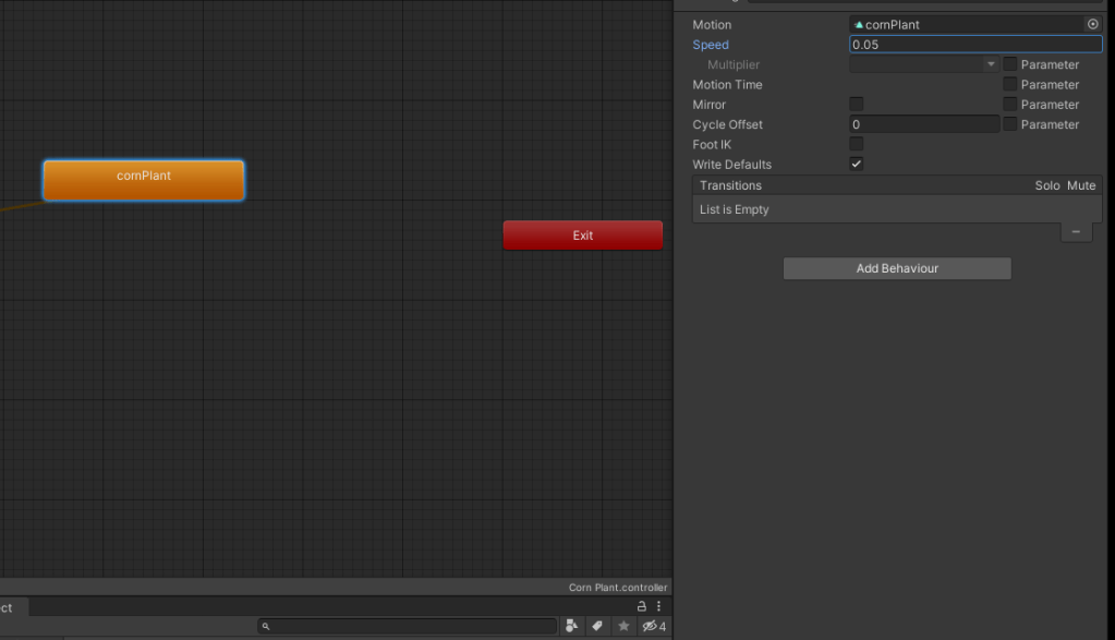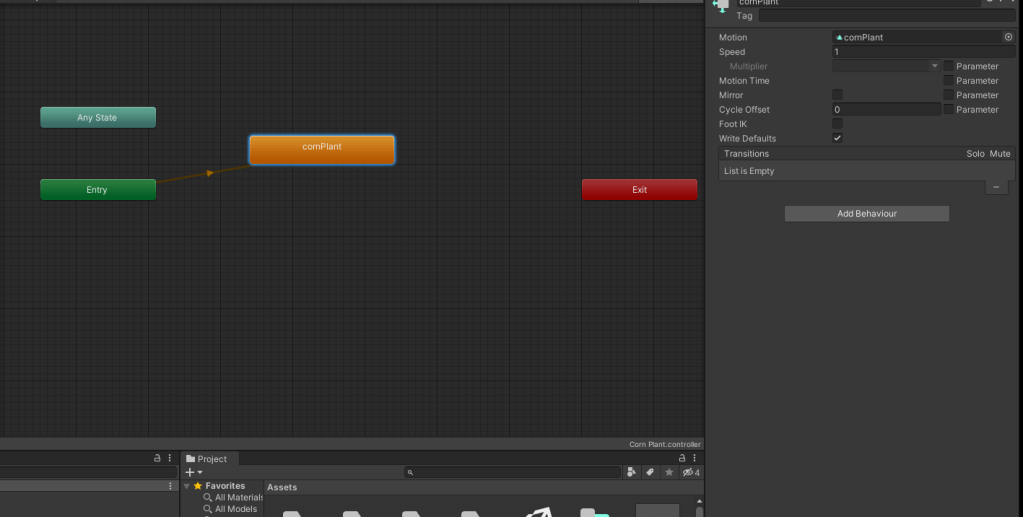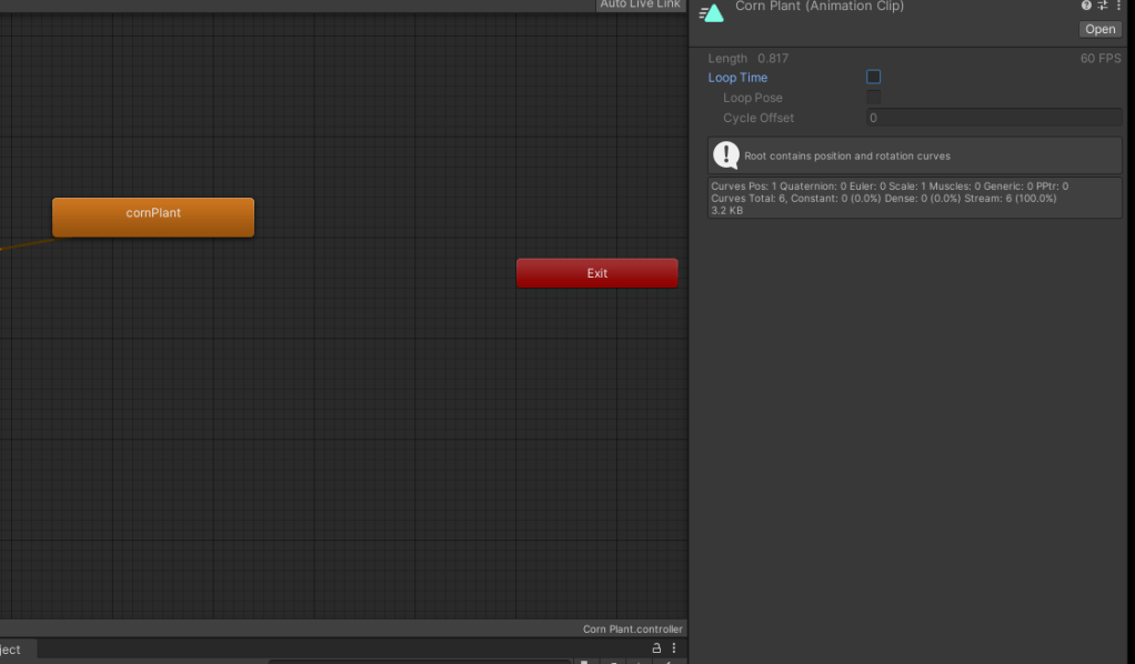 Ok Its all working as it should. Whats Next? lets Tweek the settings and add a harvest to the animation so when its done growing it produces something. In Your Assets you will see a Animation and a Animation Controller that was not there when you started. You want to click the controller.